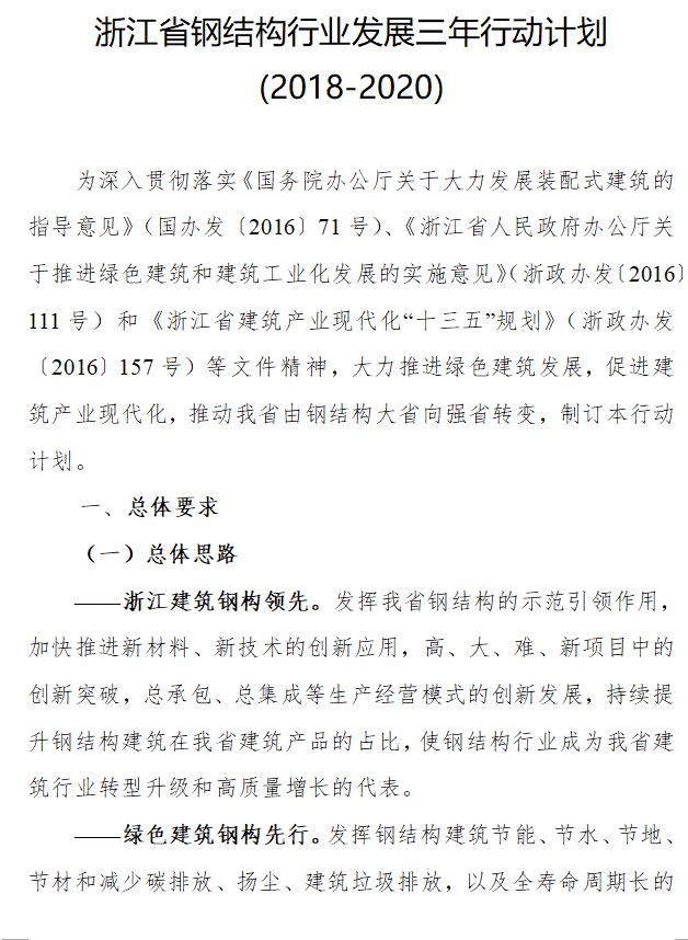 各省全力出擊之浙江省 ——印發(fā)《浙江省鋼結構行業(yè)發(fā)展三年行動(dòng)計劃(2018-2020)》