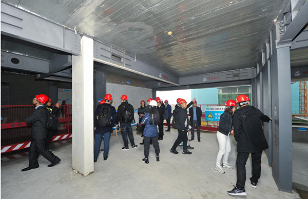 課題組還組織與會(huì )專(zhuān)家到由杭州鐵木辛柯建筑結構設計事務(wù)所鋼結構設計,中建科工集團有限公司專(zhuān)業(yè)承包的濱江·綠城江河鳴翠項目進(jìn)行現場(chǎng)觀(guān)摩。該項目位于江干區四季青街道運河東路與錢(qián)江路交叉口,2#3#樓為裝配式鋼結構住宅,結構體系采用隱式框架-鋼板剪力墻體系,地上建筑面積約15948㎡,地上23層,建筑高度73m。