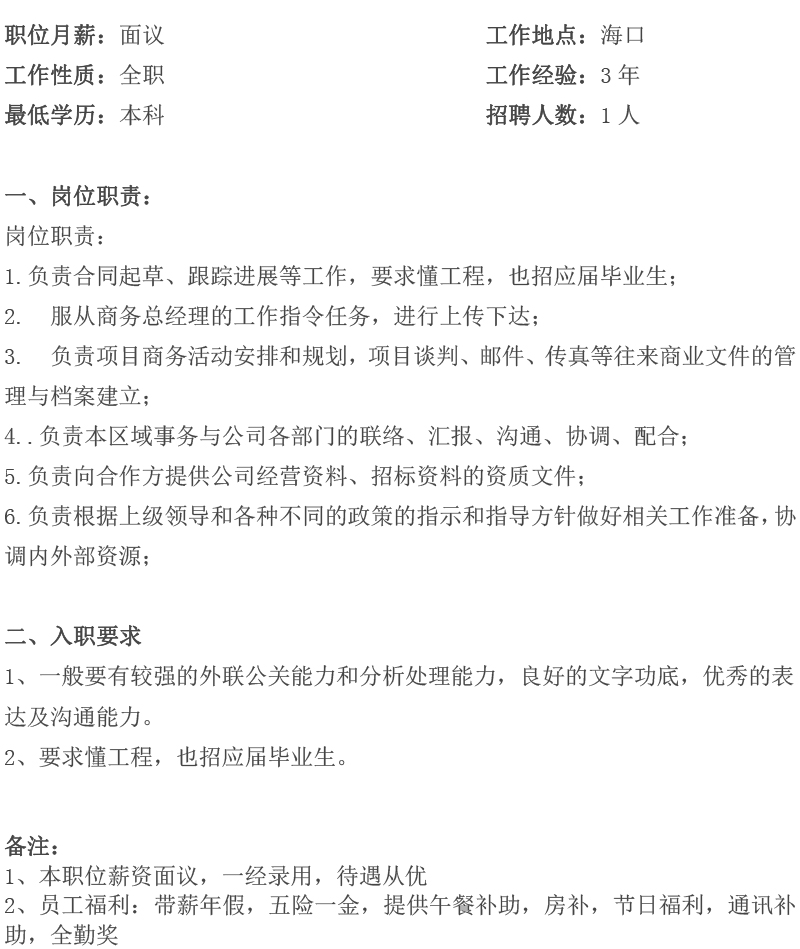 工程商務(wù)助理