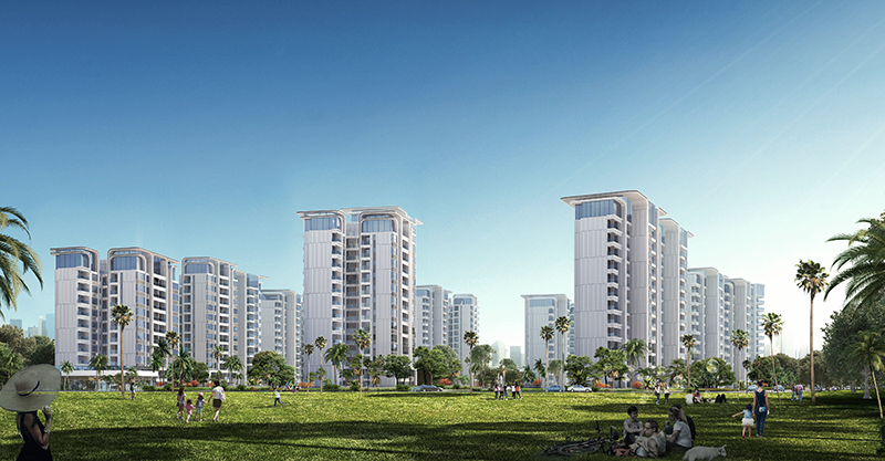 項目總建筑面積 147049.14 ㎡,其中地上計容建筑面積 105298.89 ㎡, 架空層、屋頂建筑面積 5007.3 ㎡,地下建筑面積 36742.95 ㎡。地塊西側包括 17 棟高層住宅建筑, 10~13 層,高度 40 米以下,住宅計容建筑面積 88534.06 ㎡,社區配套面積 970 ㎡;東側商業(yè)街北端為一棟商業(yè)樓,8 層,高度 28m,其余為兩層高的商業(yè)街,商業(yè)計容建筑面積 15794.83 ㎡。